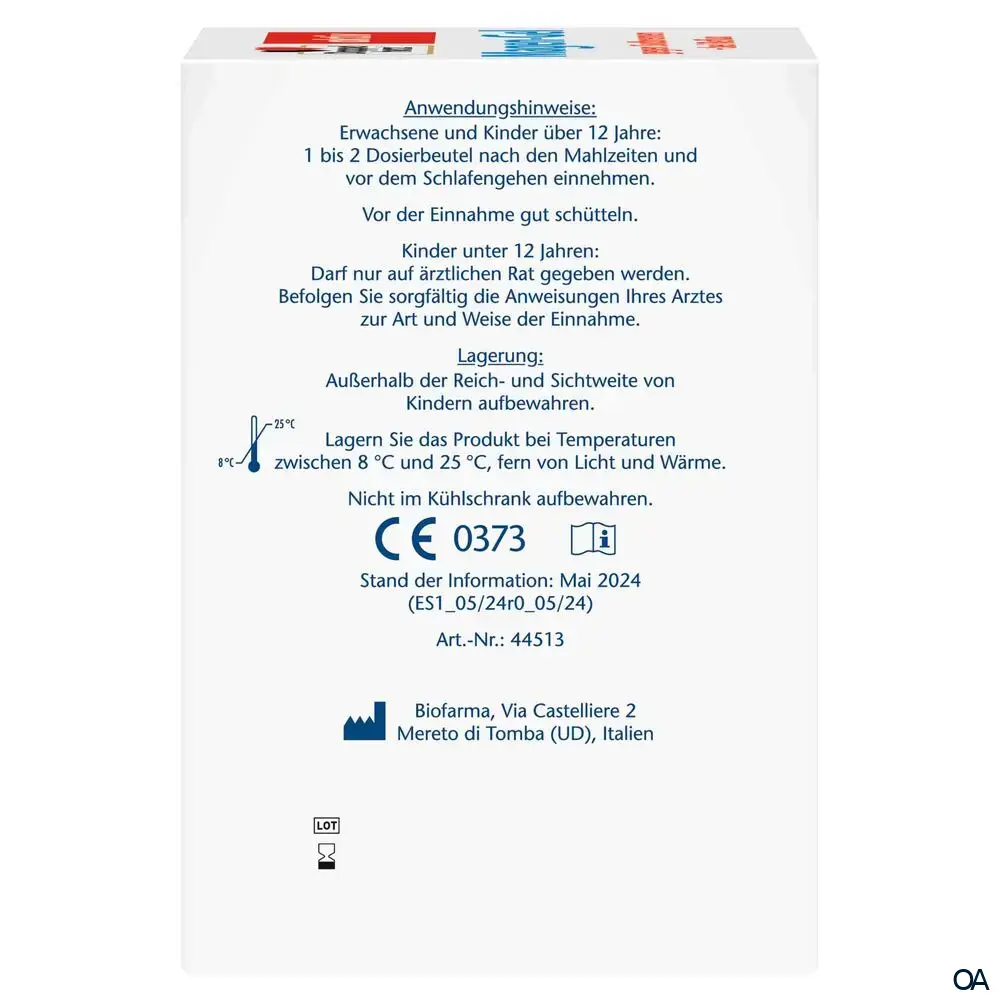 - Erwachsene und Kinder über 12 Jahre: 1 bis 2 Dosierbeutel nach den Mahlzeiten und vor dem Schlafengehen einnehmen. Vor der Einnahme gut schütteln.